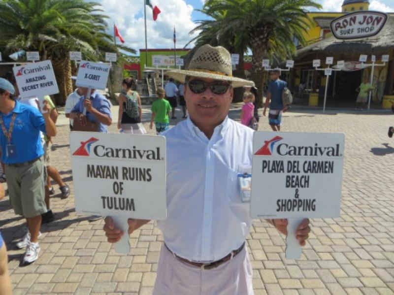 Gemimiz Carnival Victory, Cozumel limanına yanaştığında limanda başka bir Carnival gemisi “Carnival Conquest” daha demirlemiş duruyordu. 300 metre uzaktaki bir başka iskelede ise iki Carnival gemisi daha (Carnival Liberty ve Carnival Ecstasy) yine yolcularını indirmiş, beklemedeydi. Cozumel’e yaz sezonunda aynı anda 10 gemi birden geliyormuş. İnanabiliyor musunuz cruise turizminin ulaştığı boyutlara! Her gemide 3000 yolcu olsa, günde 30.000 turist eder. Başka bir şey diyemeyeceğim…