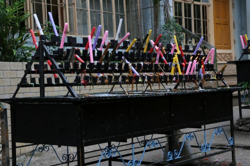 Tüm kiliselerde mum dikme alışkanlığı var. Ancak dikilen mumlar beyaz ya da çok açık renktir. Burada ise mumlar rengârenk.