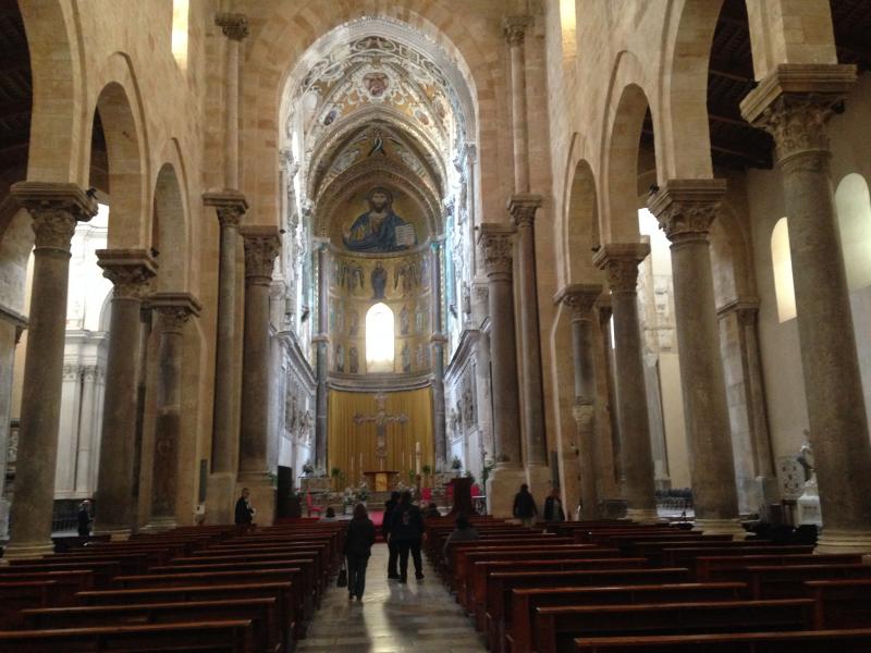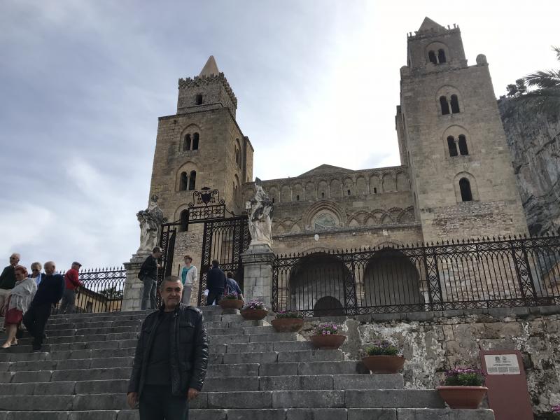Biz dağın arkasından şehrin öbür ucuna gelip aracımızı girişteki park yerine bıraktık, bundan sonra yürüyerek şehri gezeceğiz. Şehir hem küçük hem de yolları çok dar. Öncelikle meşhur katedrali görmek, sonrasında sahilde ve şehrin dar sokaklarında bir süre gezinmek istiyoruz. Şehri Fenikelilerin kurduğunu söylemiştik, kısa araştırma sonrasında öğreniyoruz ki daha sonra şehir sırası ile Yunan, Roma, Arap ve Normanların idarelerine de geçiyor. Yapımı Kral Ruggerio tarafından 1131'de başlayan ve inşası yüz yıldan fazla süren Cefalu Katedrali, Sicilya'daki en güzel ve önemli Norman katedrallerinden biri olarak söyleniyor.