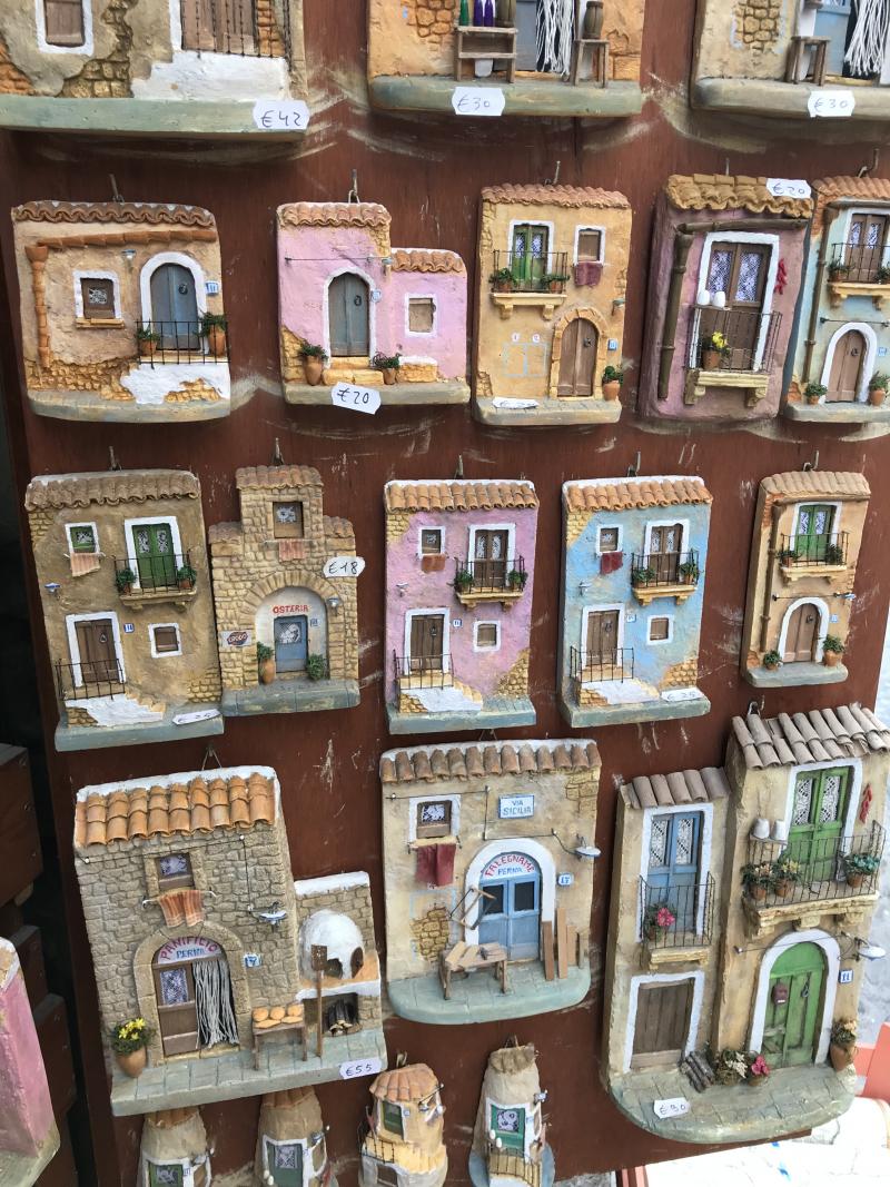 Sicilya'nın genelinde hediyelik satan dükkânlar çok güzel ama buradakiler sanki buraya özgün gibi geldi. El sanatları tavan yapmış, gerçekten çok güzel dükkânlar var.