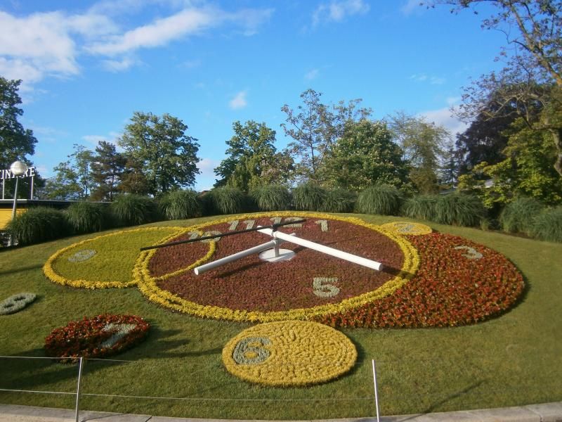 Göl kenarına yaklaşıyoruz ve kentin simgelerinden olan Çiçek Saat (Flower Clock) karşımızda beliriyor. Güneş enerjisi ile çalışan saatin etrafındaki çiçekler ise zaman zaman değiştiriliyor. Saatin bulunduğu yerden başlayarak göl kenarı boyunca geniş bir alana yayılan park ise İngiliz bahçesi olarak adlandırılan Jardin Anglais. Parkın içerisinde 1955 yılında yapılmış Ulusal Anıt ve çok sayıda güneşlenen insan görüyoruz.