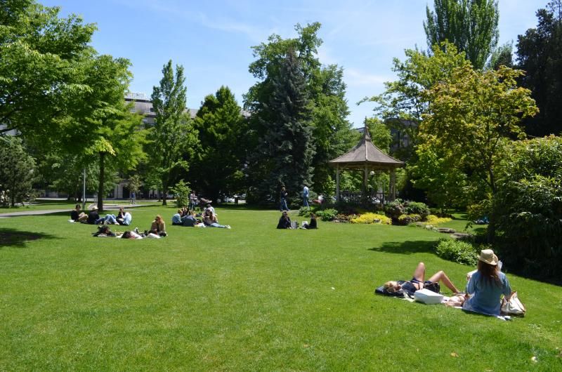 Meydanın hemen karşısında yeşillikler içinde kocaman bir park asıl görmek istediğimiz yer. Burada Cenevre Üniversitesi (Université de Geneve) ve ünlü Reform Anıtı'nı (Reformation Wall) göreceğiz. Anıt 1909 yılında, 100 metre uzunluğunda, şehrin kurucusu olan John Calvin'in doğumunun 400. yıl anısına yapılmıştır. Anıtın tam ortasında Kalvinizmin savunucularından dört reformistin, 5 metre yüksekliğinde heykeli bulunmaktadır. Parkın kendisi de saatlerce zaman geçirilecek kadar güzel. Satranç alanlarındaki insan kalabalığı ülkenin kültür düzeyinin bir göstergesi, açıkçası imrendik.