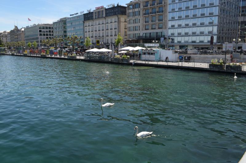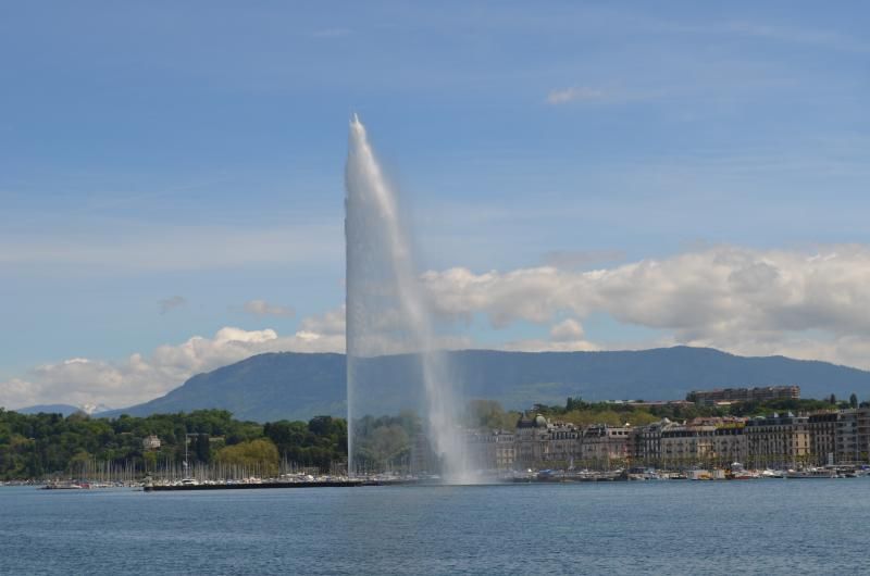 Göl kenarı ise insanın içini açıyor. İlk dikkat çeken, Çiçek Saat ile beraber, şehrin simgesi olan fıskiye (Jet d'eau). Cenevre Gölü'nün Rhone nehriyle birleştiği yerde bulunan fıskiye, suyu 140 metre yükseğe kadar çıkaran görüntüsü ile neredeyse şehrin her noktasından görülebilmekte.