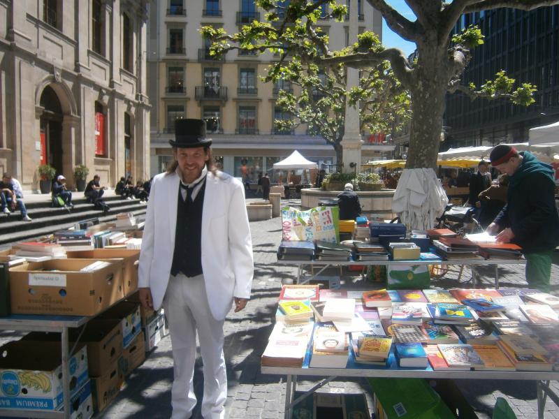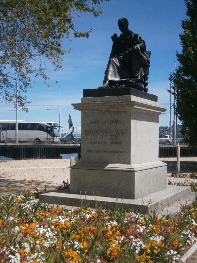 Mont Blanc Köprüsü üzerinde çok geniş açı ile Cenevre'yi seyrediyor ve göl kenarında yürüyoruz. Köprünün batısında Rousseau Adası'na yürüyoruz ve Rousseau'nun heykelini görüyoruz.