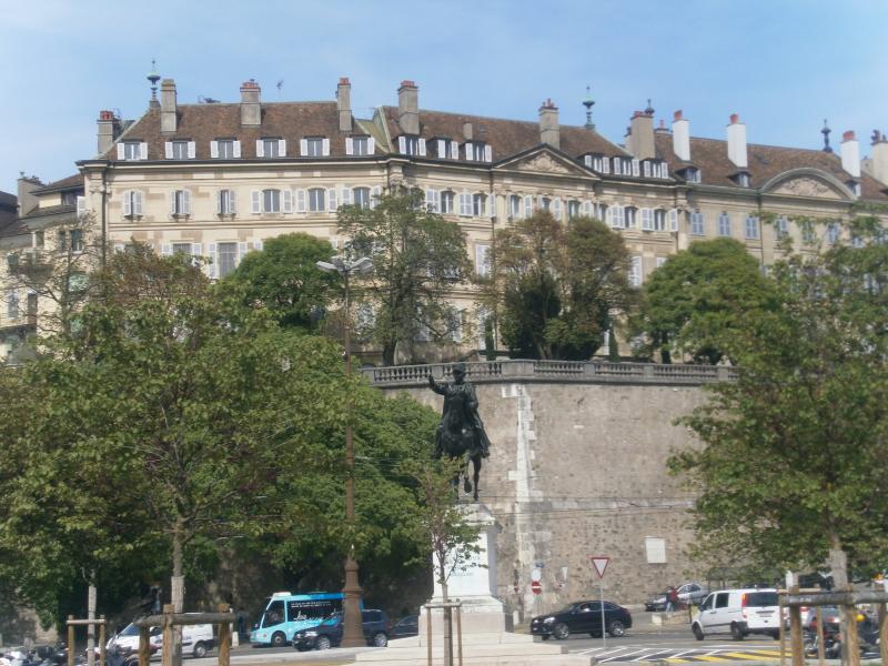 Plainpalais tramvay istasyonunda iniyoruz. Amacımız önce Neuve Meydanı. Meydanın ortasında 1787-1875 yılları arasında yaşamış ünlü General Guillaume Henri Dufour'un heykeli bulunmaktadır. Meydanda 4 önemli bina yer alıyor: Victoria Konser Salonu, Büyük Tiyatro, Rath Müzesi ve Cenevre Konservatuarı.