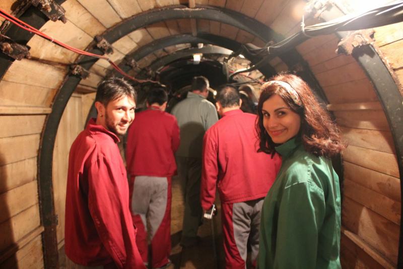 Patika gibi bir yoldan çıkıp nihayet geliyoruz. İngilizce tur olan saati bekleyip hediyelik eşya satan küçük bir girişin olduğu yerde bekledikten sonra rehberimiz geliyor ve içeri giriyoruz. Dışarıda 30 derece sıcaklık var ancak mağaraya girdiğimizde üşümememiz için bize madenci kıyafetlerinden beden ölçülerimize göre dağıtıyorlar ve içerisi gerçekten çok serin. Kıyafetlerimiz hepimizi eğlendiriyor. Kimine kırmızı, kimine yeşil, kimine yamalı olanlar denk düşüyor. Bütün eşyalarınızı kilitli numara verilen dolaplara bırakıyorsunuz.