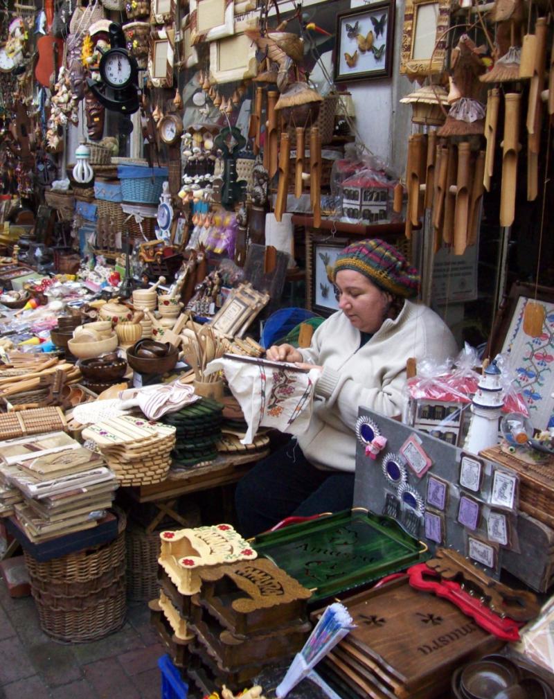 Kahve sonrasında hemen yan sokaktaki Çekiciler Çarşısı’nı gezmeye başladık. Çekicilik, ahşap oymacılığı süsleme sanatına verilen ad. Eskiden küçük el tezgâhlarında yapılıyormuş. Şimdilerde Amasra Hatırası hediyelik eşyalar; ahşap ürünler, tel kırma işlemeler, el dokuma kumaşlar, meyve çekirdeklerinden yapılmış özel takılar bulabileceğiz en ideal yer bu çarşı.