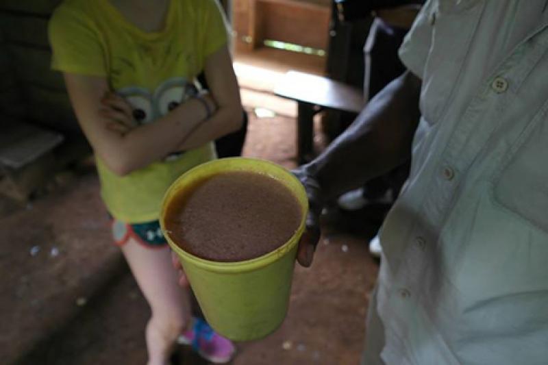 Dönüş yolunda yine kendi yapımları olan, bir yamaca kurdukları teras türü bir barakada öğlen yemeği molası verdik. Kumanya kutularımızda ekmek arası sandviç, yumurta, muz ile tropik bir meyve suyu vardı. Buradan ayrıldıktan sonra, yol üzerinde köyün başlıca geçim kaynaklarından muz birasının yapılışını birebir gözlemleyip tatmak için bir baraka dükkâna misafir olduk.