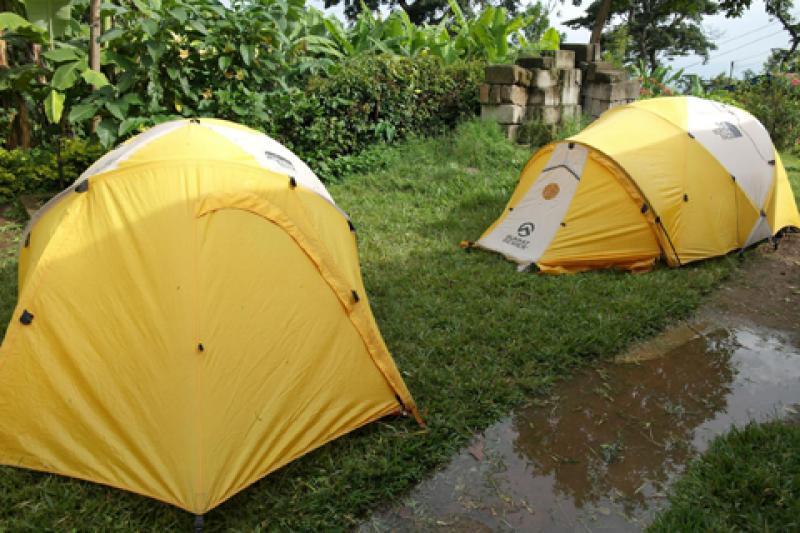 O ne! Çadırlarımızı bahçelerine kurmuşlar bile… Biz yokken ev sahipleri iyi çalışmışlar... İki tane çadır kurmuşlar, birisi bana diğeri de rehberim Paul'a ait olanı.