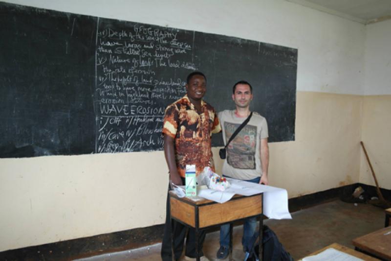 Programımda sırada, köyün bir ilkokulunu ziyaret etmek var. Yürüyerek Mruwia İlkokulu'na ulaşıyoruz. Öğrenciler derste, penceresi olmayan sınıflarda ders yapıyorlardı. Bu okulda coğrafya dersine misafir oluyorum. Sınıfın minikleri beni İngilizce “Mehmet Han Tanzanya'ya Hoşgeldin” diyerek ayakta karşıladılar. Onlara yanımda getirdiğim çikolataları dağıtarak bu okuldan ayrılıyorum.