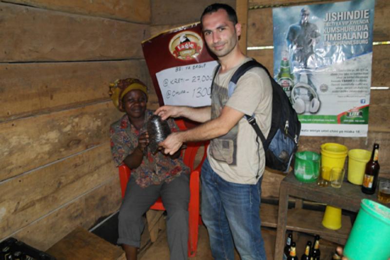 Yolda son kez köyün baraka bir dükkânına uğruyorum, burada satılan Serengeti ve Kibo biralarını inceledikten sonra buradan bir paket kahve satın alarak ayrıldım.