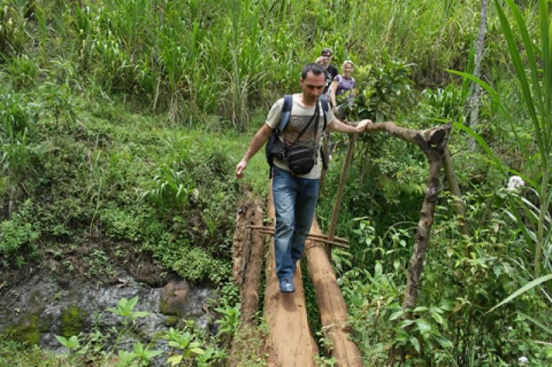 Sık sık uykum bölünerek kısa periyotlarda uyumaya çalışıyordum. Bir ara acayip, garip garip sesler duymaya başladım. Sanki ayak sesi gibiydi, çatılarda birileri koşturuyor gibiydi. Tabii ne olduğunu bilmediğim için biraz ürkmüştüm. Meğer geceleri bu köy maymunların istilasına uğrarmış. Maymunlar dört bir tarafı muz ağaçlarıyla çevrili bu köye muz yemeye gelirlermiş. Bu ayrıntıyı da sabahleyin rehberim Paul'dan öğrenmiş oldum.