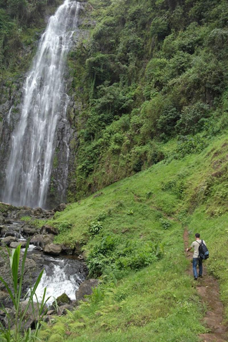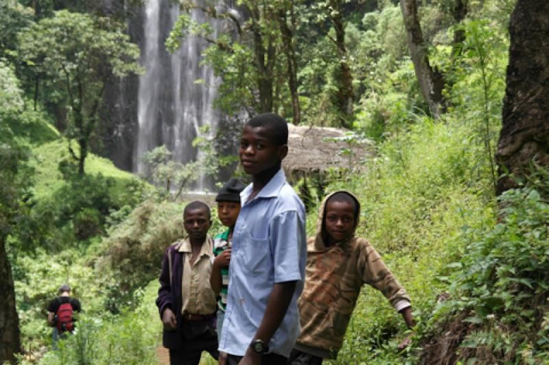 Yol boyunca; beni selamlayan köyün şirin ve sevimli çocukları, baraka tahtadan yapılmış camı olmayan evleri, kendi imalatları muz biralarını satan köylüleri ve köyün muhteşem doğasını gözlemleyerek 75 metreden gürül gürül dökülen şelaleye ulaştık. Yakaladığım muhteşem fotoğraf karelerinden sonra buradan yürüyerek ayrıldık.