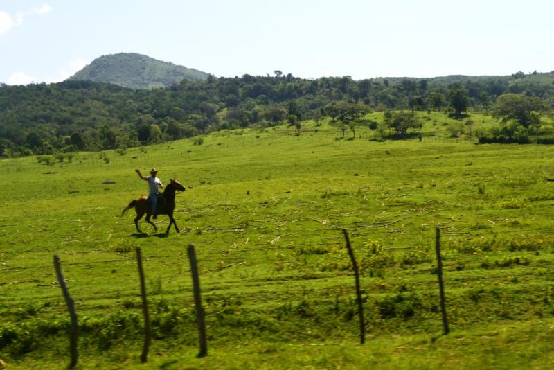 Solunuza Atlantik Okyanusu'nu alıp, sağımıza yeşilin bütün tonlarını alıp yolculuk yapıyorsanız Küba’da doğu batı yönünde ilerliyorsunuz demektir. Kişi başı 20 Kuka (60 TL) anlaştığımız bize özel taksi ile Santa Clara yolundayız. Köylerin içinden geçerken bize köy gibi gelen şehirlerden çıkıp yolculuk yaparken köylerin içinden geçtik. Bunlar için ise ne demek doğru olur bilmiyorum. Ama daha zorlu yaşamların olduğunu söylemem yanlış olmaz. Yani şehirdeki insan ile buradaki insanların çok fazla eşit olduğunu düşünmüyorum yaşam kalitesi bakımından Küba’da. Yani Küba’nın da şehirlisi ile köylüsü aynı değil. Eski aracımızla yol aldığımız süre boyunca özlediğim Türkçe müzikleri dinledim. Bisikletle çocuğunu okula götüren köylüler, atın üzerinde tarlaya giden insanlar gördüm fazlasıyla. Yolda küçük bir yerde durup muz aldık. Bu kez onların kullandığı paradan yani pesodan verdiğimizde kabul gördü ve bu da oldukça ucuza gelmesi anlamına geliyor.