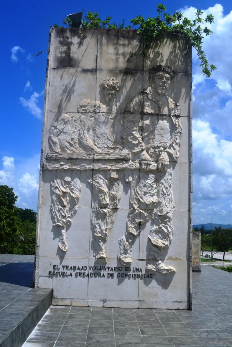 Her lider için geçerli olan bir durumdur kimi tarafından hayran olunup kimileri tarafından sevilmemek. Ama tartışmasız olan bir gerçek var ki herkes tarafından bilinmek. Dünyada en bilindik portrelerden birisi şüphesiz Ernesto Che Guevara. Che Guvera’nın anıt mezarına gitmek için üç tekerli bisikletleri tercih ettik. Yaklaşık bir km’lik yolu 1 Kuk’a bu araçla gitmemizin amacı sadece binmiş olmak içindi. Gittiğimizde Che’nin büyük bir heykeli, onun yanında devrimi anlatan duvar resmi ve Fidel’e yazdığı mektubun büyük kabartma şeklinde duvar yazısı vardı. Bu büyük anıtın altında ise müze var. Anıtkabirdekinin yanından geçemez ama yine de güzel. Müzeye girerken fotoğraf makinesi dahil tüm eşyalarımızı aldılar. O açıdan herhangi bir fotoğraf yok oraya dair. Müzede Che’nin çocukluğundan ölümüne kadar fotoğrafları, kullandığı eşyalar, günlükleri, yazışmaları gibi bir çok şey var. Müzenin yanındaki odada ise Bolivya’dan 1997’de alınan kemikleri var. Yerde bir mezar şeklinde değil ama. Bolivya’da kendisi ile birlite ölen altı yoldaşı ile birlikte resimlerinin mevcut olduğu duvara gömülü bir şekilde. Fidelin yaktığı devrim ateşi Che’nin yattığı yerin hemen yanında. Che ve diğer devrim muhafızlarının bedenleri duvara monte edilmiş durumda ve bunların önlerinde resimleri var. Önlerinde durup tarihe tanıklık ettik.
