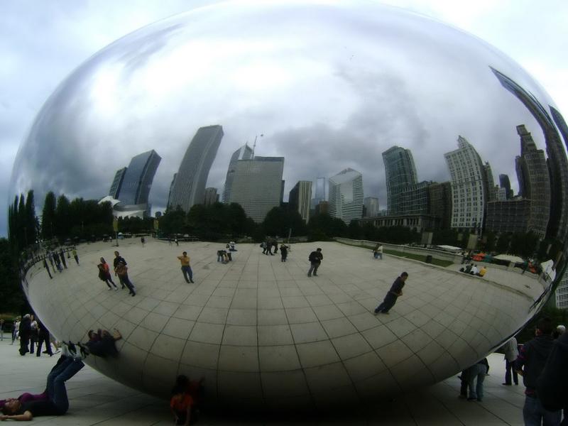 Yine Millenium Park’ta Cloud Gate heykeli (veya şeklinden dolayı yaygın olan takma adıyla “The Bean”) ise devasa bir elips ve ayna. Bu ayna elipsin neresinde durduğunuza bağlı olarak sizi yamuk yumuk gösteriyor, arka plana şehir yansıyor, umarım aşağıdaki fotoğraflar ne demek istediğimi gösterir.