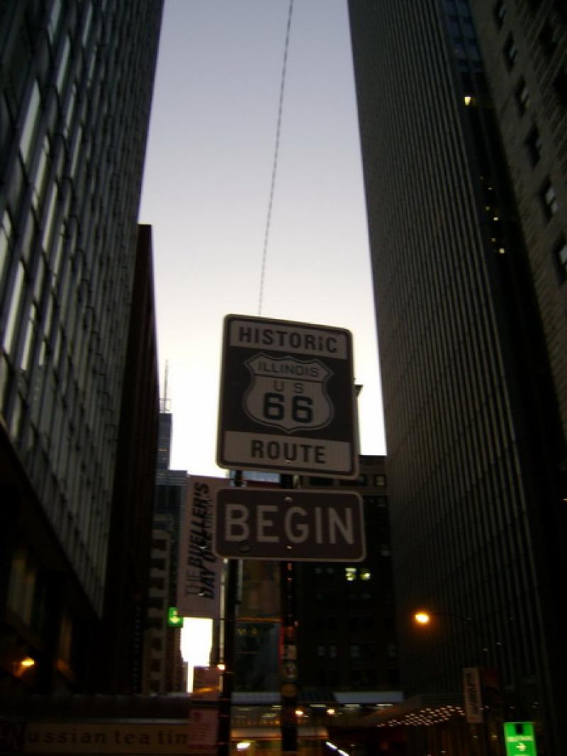 Çok popüler olduğunu sanmıyorum ama Amerika’nın efsanevi yolu Route 66 Chicago’dan başlıyor ve taaaaa Los Angeles’a kadar gidiyor. Tam 3940 kilometre. Her ne kadar artık kullanılmasa da bu yolun başlangıç işaretini de bulduk ve hemen nostaljiyi seven insanlar olarak önünde poz verdik.