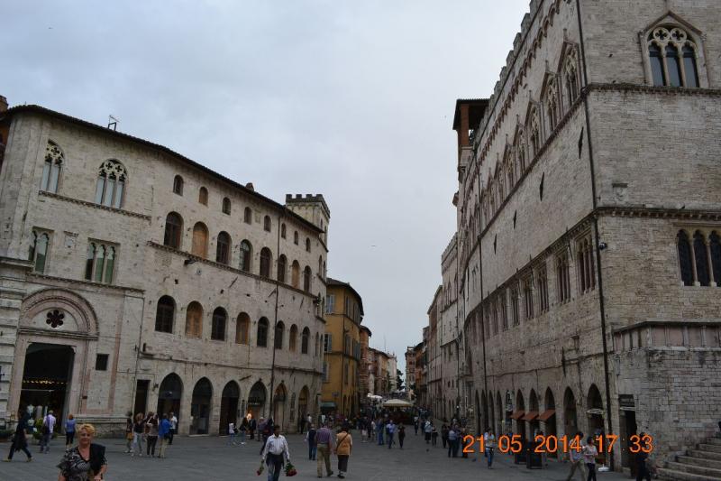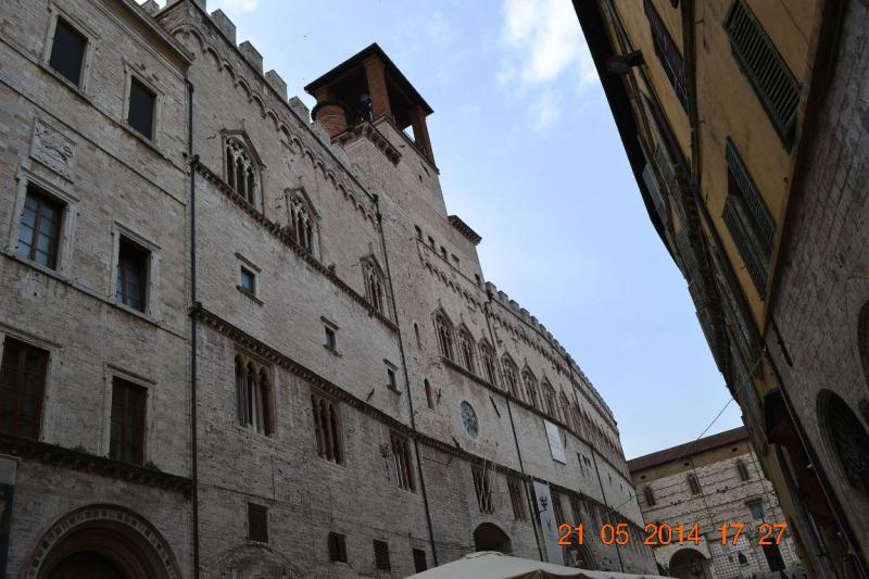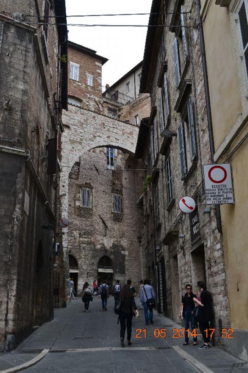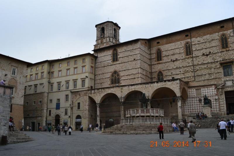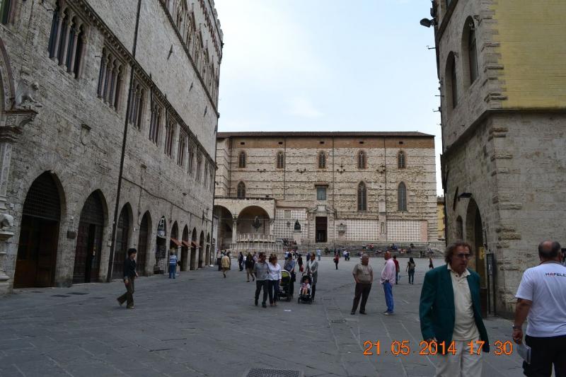 Umbria bölgesinin başşehriPerugia; Toscana bölgesindeki hemen her şehir gibi bir tepe üzerinde kurulmuş, yeni şehir ise aşağıda Tiber Nehri kenarında gelişmiş. Otelimize ulaşmak için epey tırmanıyoruz. Şehrin en tepe noktasında “tarihi eski şehrin merkezinde” restoran ve cafelere yürüyüş mesafesinde, güzel bir konumda ve 5 yıldızlı tarihi bir otel “Brufani Palace”.
