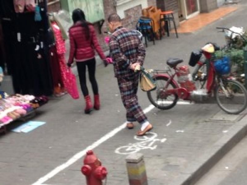 Çin'de bu amcayı kimse garipsemez, ne olmuş yani pijamasıyla çıktıysa?