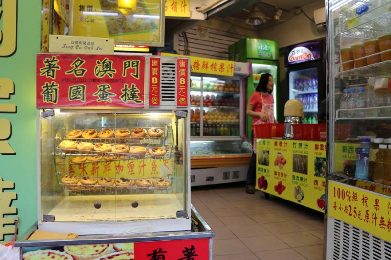 Akşam saatleri olmuş ve hava kararmıştı. Önce yemek yemek için bir yer bulmak konusunda biraz sıkıntı yaşadık. Otel çevresinde gördüğümüz restoranlar çok cezbedici görünmese de içlerinden birini tercih ettik. Yerel mutfakları aslen Kanton mutfağı ama Portekiz etkisi de çok. Benim dikkatimi çekenlerden biri burada yumurta ve tavuğun çevre bölgelere göre burada çok daha fazla kullanıldığı idi.