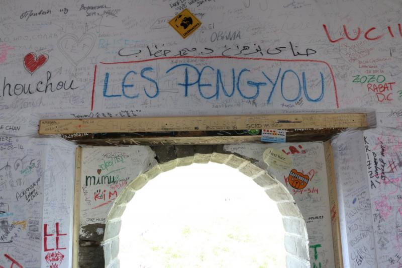 Kulelerden birinin içinde geçiyoruz. Her gelen bu kuleye isim yazmış. Biz de Gezimanya Sticker’ı yapıştırıp, yolumuza devam ediyoruz.