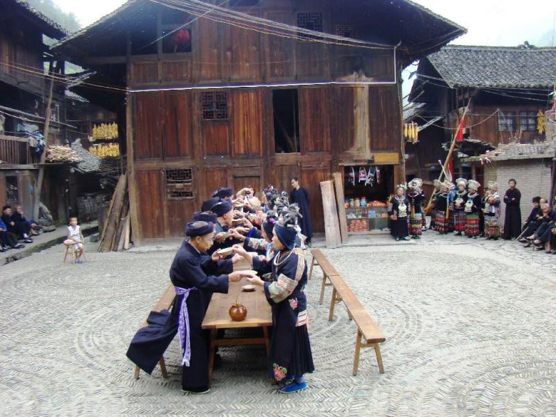 Ertesi sabah kahvaltıdan sonra yeni bir deneyim için bu kez “Kısa etekli Miao etnik grubu”na ait Qingman Miao köyüne gidiyoruz. Köyün girişinde köylüler tarafından yine törenle ve pirinç şarapları ile karşılanıyoruz, dünkü ziyaret ettiğimiz köye göre daha turistik. Bu kez hüzün yok, neşe içinde köy meydanında folklorik bir dans gösterilerini izliyor daha sonra bizi de aralarına alıyorlar ve hep birlikte hemen hemen bizin halayı andıran bir dans yapıyoruz.