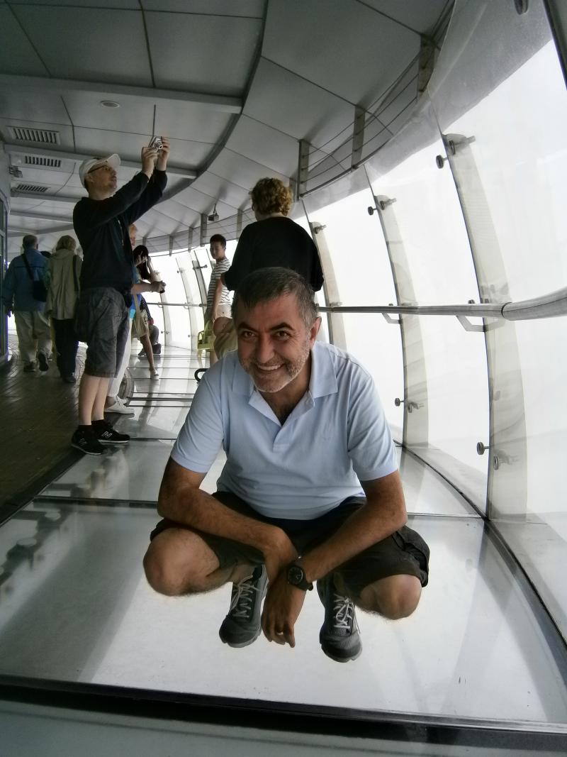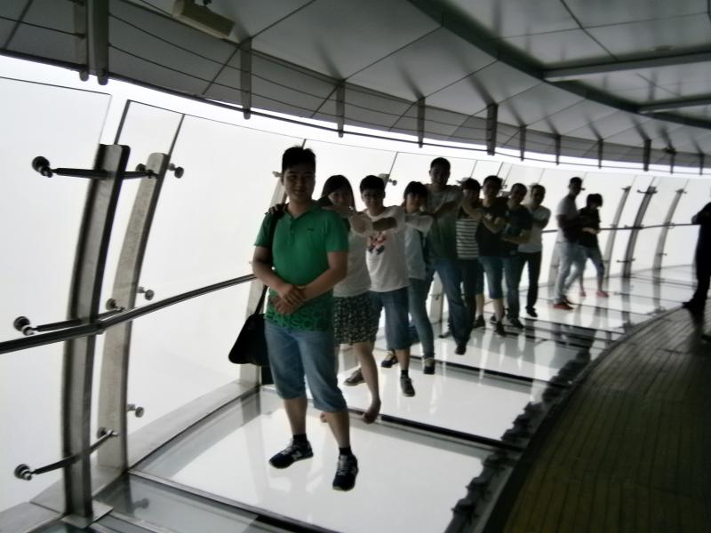 Sıra geldi Şangay Televizyon Kulesine. Şangay Çin'in en büyük ve en modern şehri. Shanghai’da en çok dikkatinizi çekecek yapı hiç kuşkusuz Shanghai Televizyon kulesi olacaktır. Farklı mimarisiyle geceleri ayrı, gündüzleri ayrı bir güzelliği var. 468 m yükseliği ile Dünya’nın en yüksek 3. Televizyon kulesi olduğundan şehrin bir çok yerinden görebiliyorsunuz. Kulenin üzerinde çapı yukarıya doğru küçülen 3 adet küresel yapı dikkatinizi çekecektir. 2.kattaki şeffaf tabanlı bölüme çıktık. Buradan bütün Şangay’ı, hava puslu olmasına rağmen, kuşbakışı olarak seyrettik. Manzara gerçekten muhteşem görünüyor. Şeffaf taban önce ürkütüyor ama sonra herkesle beraber keyfini çıkarıyoruz.