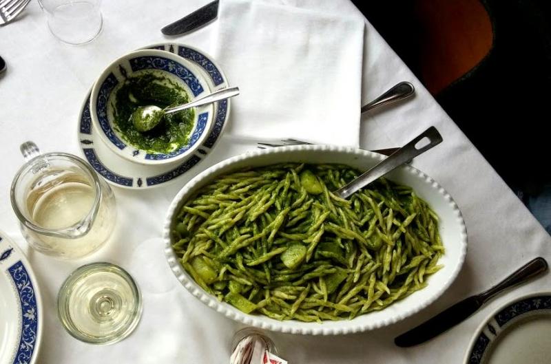 Esyalarımızı bırakıp yemek icin hemen "Ristorante Belvedere"de buluyoruz kendimizi. Sahildeki restoran duyduğumuza göre Vedat Milor'un de gidip önerdigi yerlerden biriymis. Cenova bölgesinde olduğumuz için pesto çılgınlıgına giriyor, resturantın kendi yapımı makarnası ve pesto sosu ile "trofie genovese" ve "pesto bruschetta" istiyoruz. Yanında yine ev yapımı sarap. Ne kadar taze ve lezzetli olduğunu söylemeye sanırım gerek yok : )