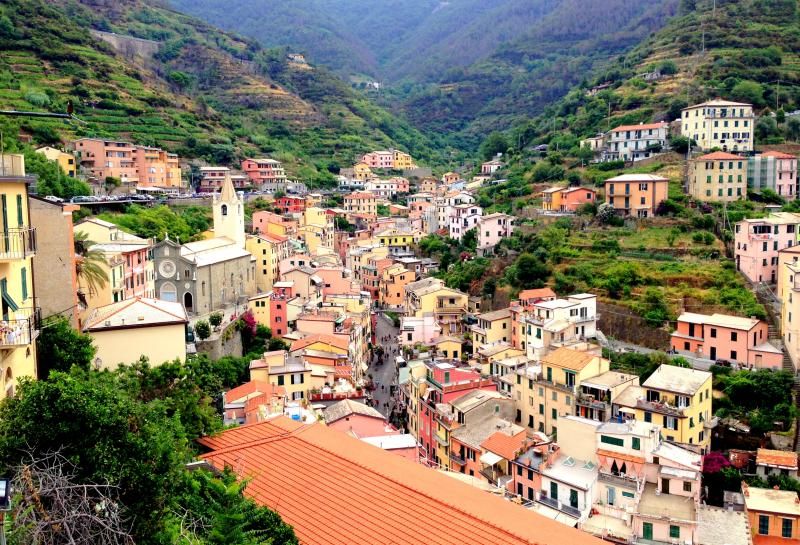 Bayan Pek Yer ile ilk durağımız konaklayacağımız köy olan Riomaggiore oldu. Köye ulaşmak için istasyondan indikten sonra sağa dönüp kısa bir alt geçit tünelini geçmek gerekiyor. Tünelin ardından da büyüleyici Riomaggiore sizi karşılıyor. İlk iş kalacağımız hostele gidiyoruz. Köyün ana caddesi üzerinde yer alan hostelin ofisinden çıkıp; sincap misali zıplamak suretiyle ara sokaklardaki merdivenleri tırmanarak odamızın olduğu binaya ulaşıyoruz. Köyün yamaca kurulu olması sebebiyle oluşan kot farkı en çok bizim işimize yarıyor ve enfes bir manzara ile karşılaşıyoruz. Gerek odanın konumu ve temizliği gerek de çalışanların nezaketi sebebiyle Riomaggiore "La Dolce Vita" hostel tercih edilebilir.