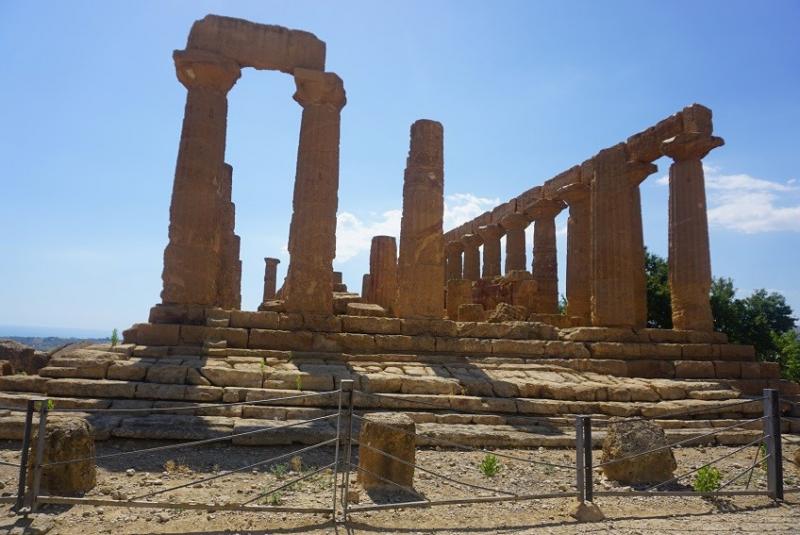Juno (Hera) Tapınağı: MÖ 5. yy.'dan kalma, MÖ 406'da Kartacalıların işgali sırasında yakılmış ve bir de deprem geçirmiş olmasına rağmen büyük bölümüyle ayakta durabilmiş.