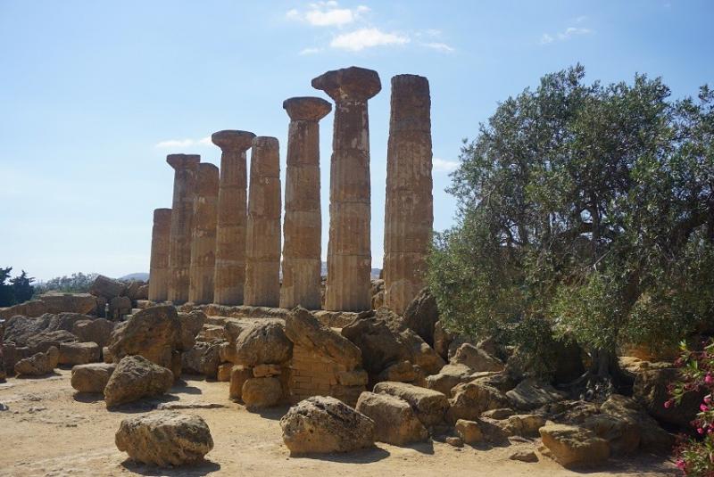 Herkül Tapınağı: Juno’nun yanında duran Tapınak ise MÖ 6. yy.'dan kalma. Orijinalinde 38 adet olan sütunlarının sadece 8 tanesi ayakta ve 4 tanesinin başlığı günümüze kadar gelebilmiş.