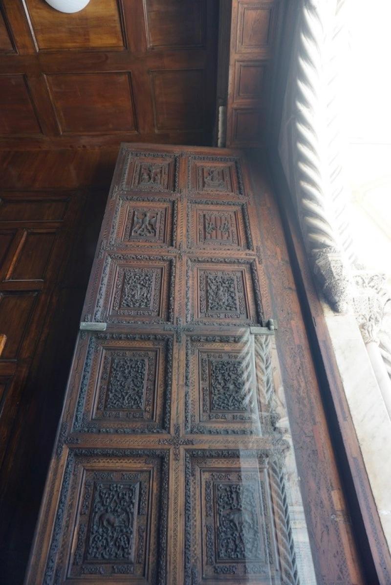 Ahşap kapı ve detaylarına da hayran kaldım. Mutlaka girin içeri, Normanni Palas kadar görkemli olmasa da yerdeki dönenceler ilginizi çekecektir.