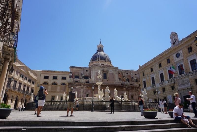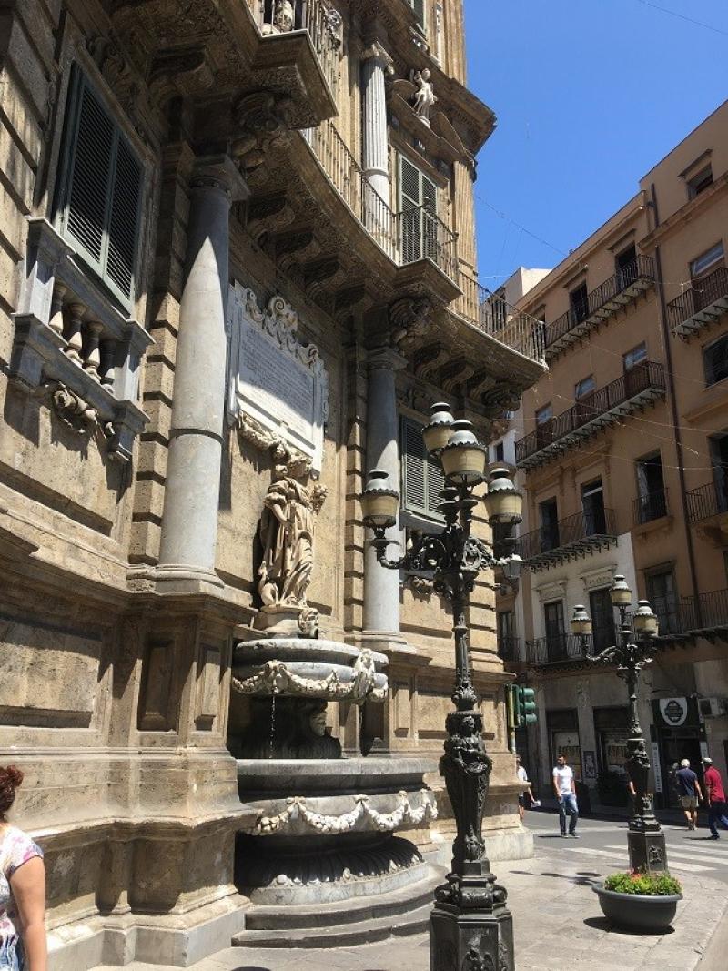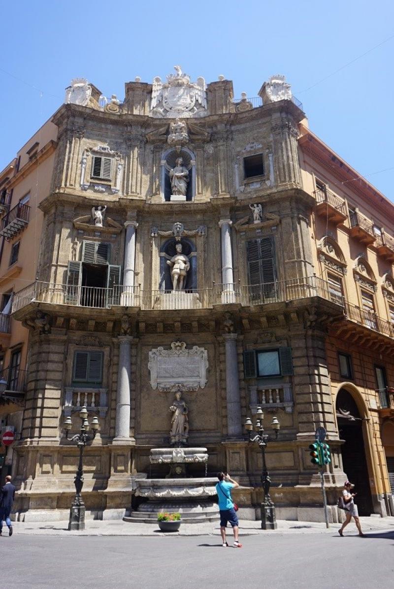 Emmanuele ve Maqueda’nın kesiştiği noktada dairesel dört köşe oluşmuş. Her binanın içbükey köşelerindeki, birbirinin aynı heykeller ve klasik Yunan sütunlu çeşmeler hayli ilginç ve hoş görünüyor. Oldukça turistik meydan şehrin merkezi ve “dört mevsim”i simgeliyor.