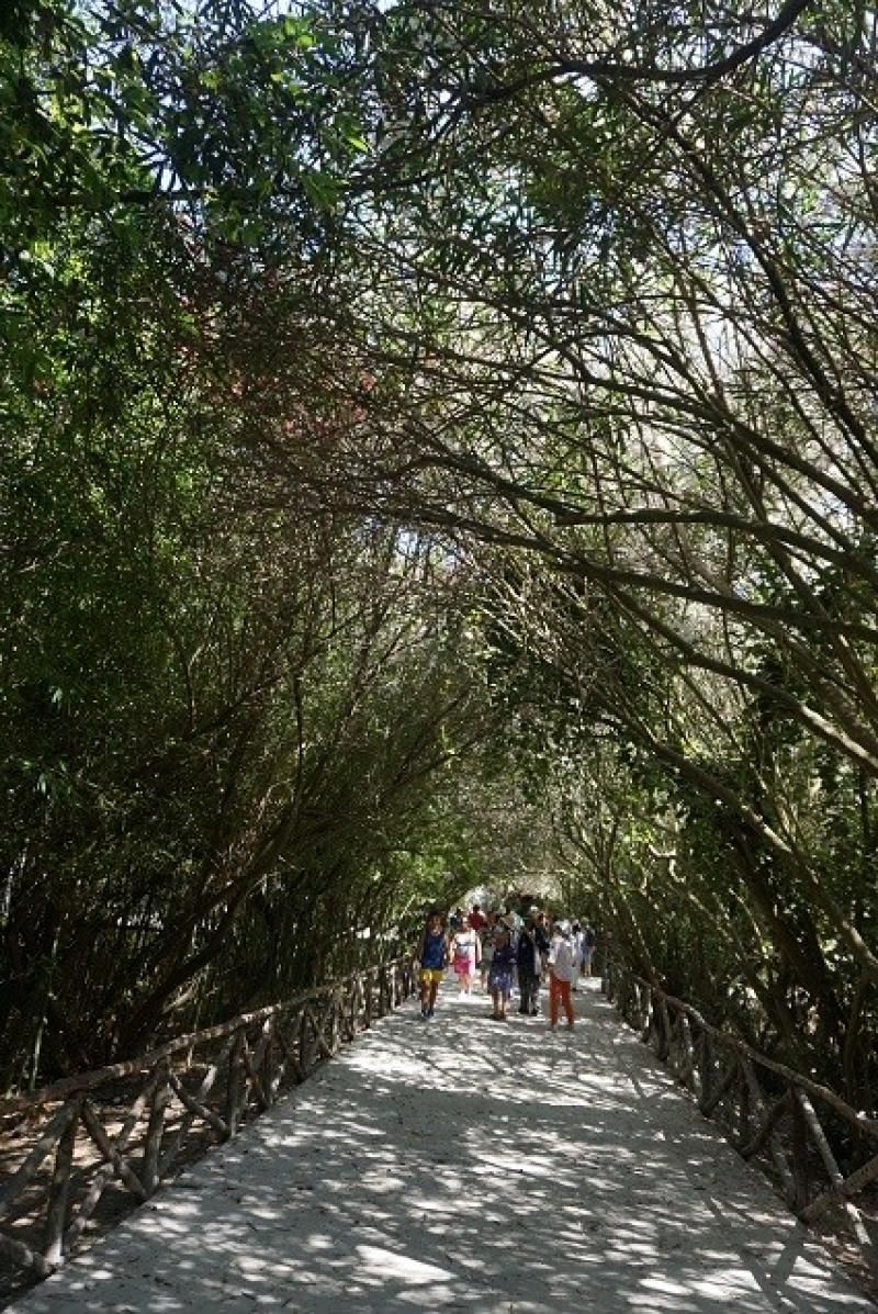 Hatta ağaçların dalları birleşmiş ve yol üzerinde adeta bir tak oluşturmuş, doğrusu o sıcakta iyi geldi bize bu gölge ve serinlik.