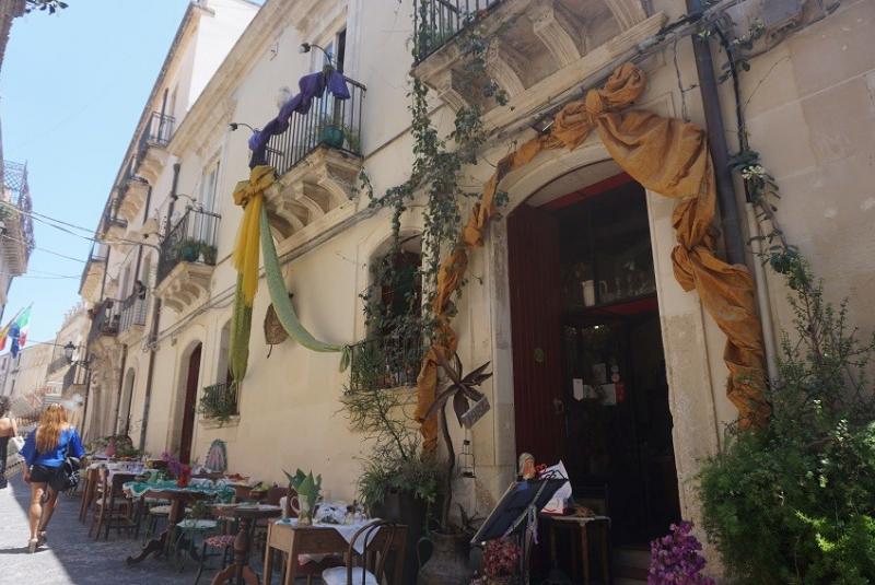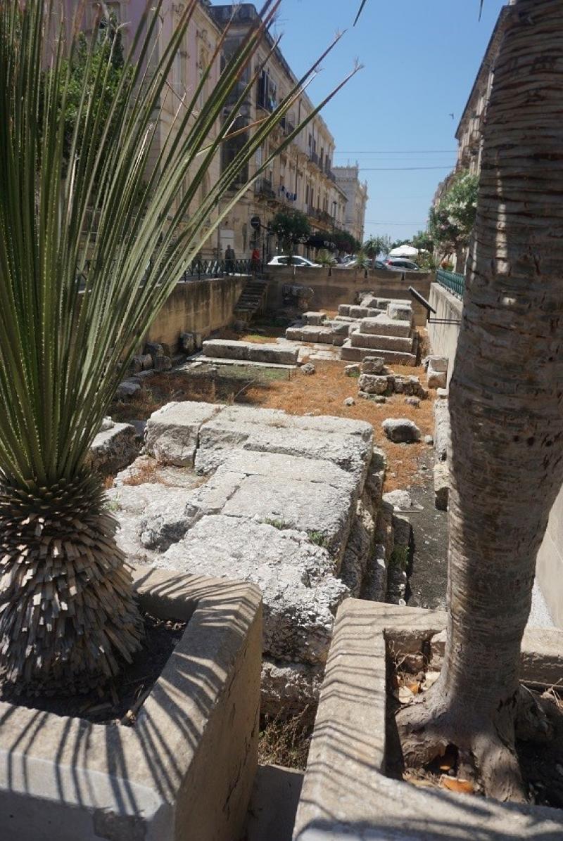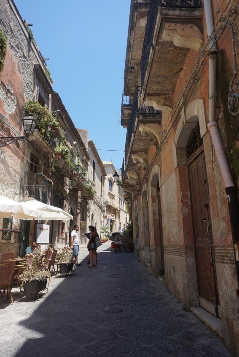Aracımızı şehrin girişindeki geniş alana park ettikten sonra kentin ara sokaklarında yürüyerek, Ortigia Adası’na doğru ilerliyoruz. Yürümek istemezseniz bu meydandan şehre giden otobüsleri kullanabilirsiniz. Siracusa'dan iki köprü ile ayrılan küçük ama sevimli ada, dar sokakları, Akdeniz bitkisi zakkumlarıyla çok şirin. Sağlı sollu tarihî yapılarla çevrili sokak aralarında bile karşımıza tarihî eserler çıkıyor.