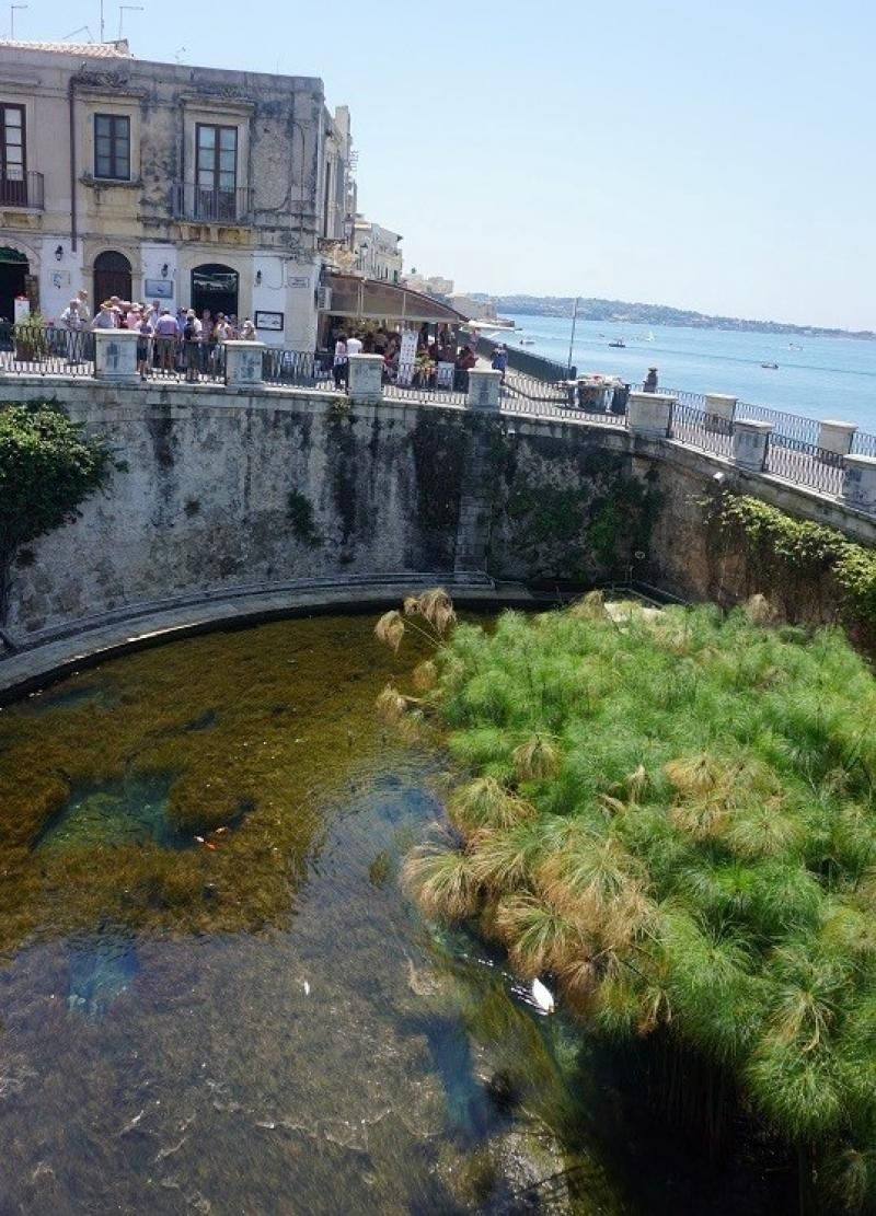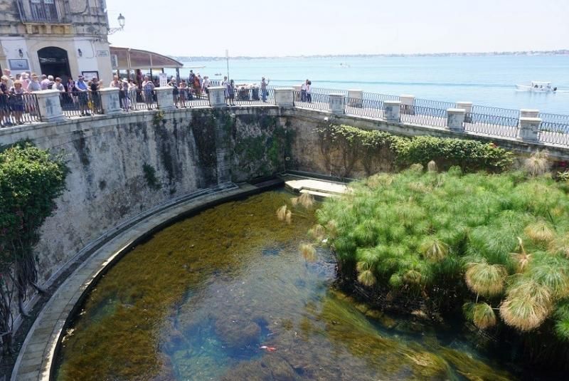 Denize doğru inen sokağın sonunda tam karşınıza “Fonte Aretusa”, yarım daire şeklinde denizle yol arasında bir havuzun çıkacak. İçinde ve duvarlarında ilginç bitkiler, palmiyeler göreceksiniz.