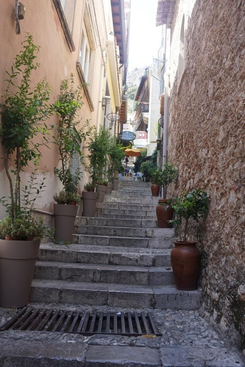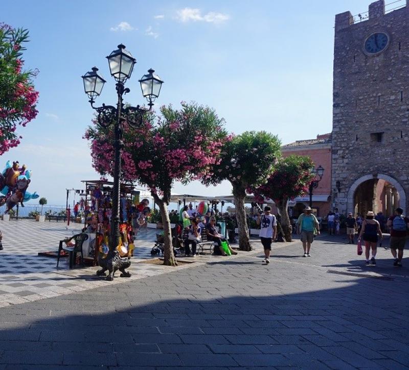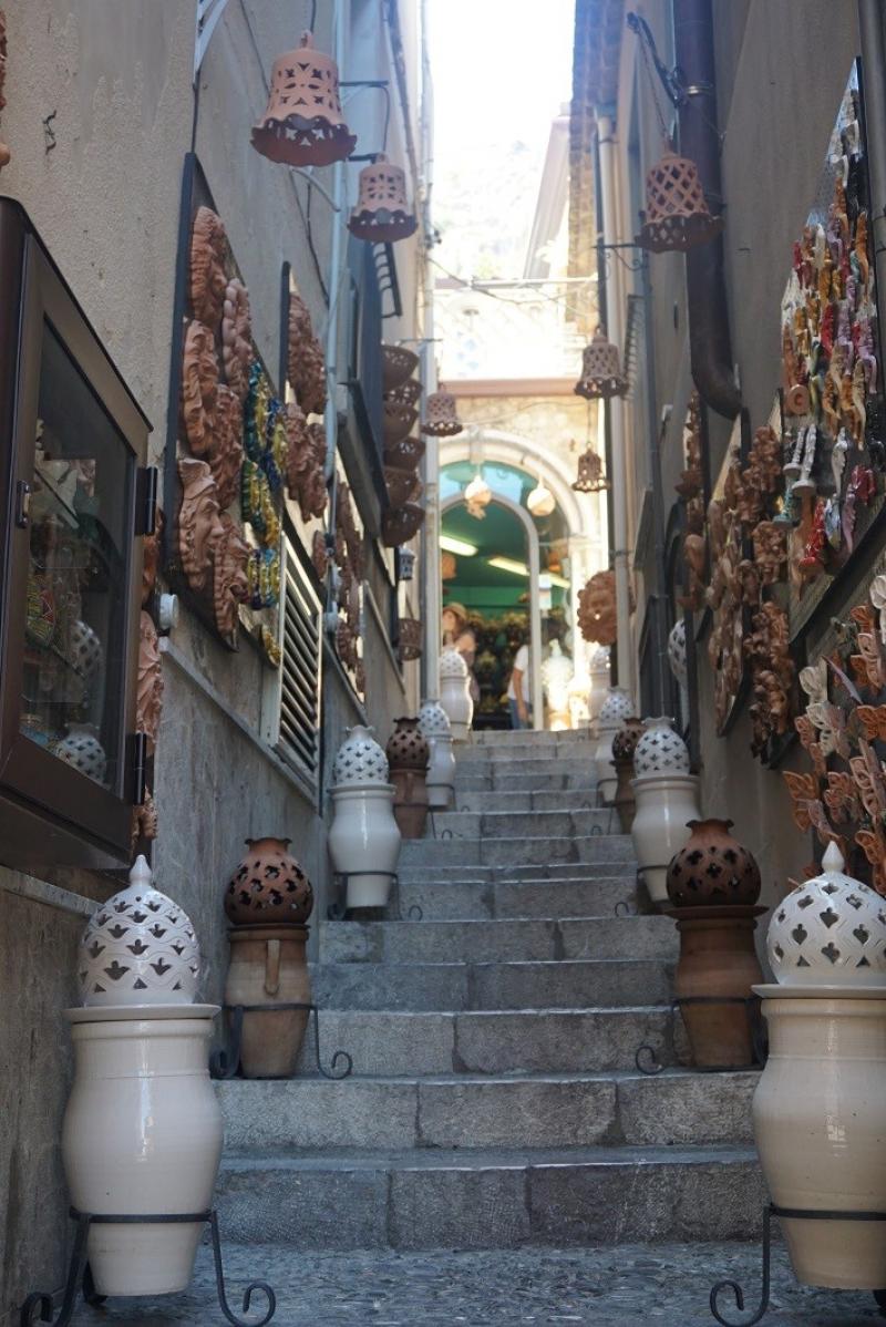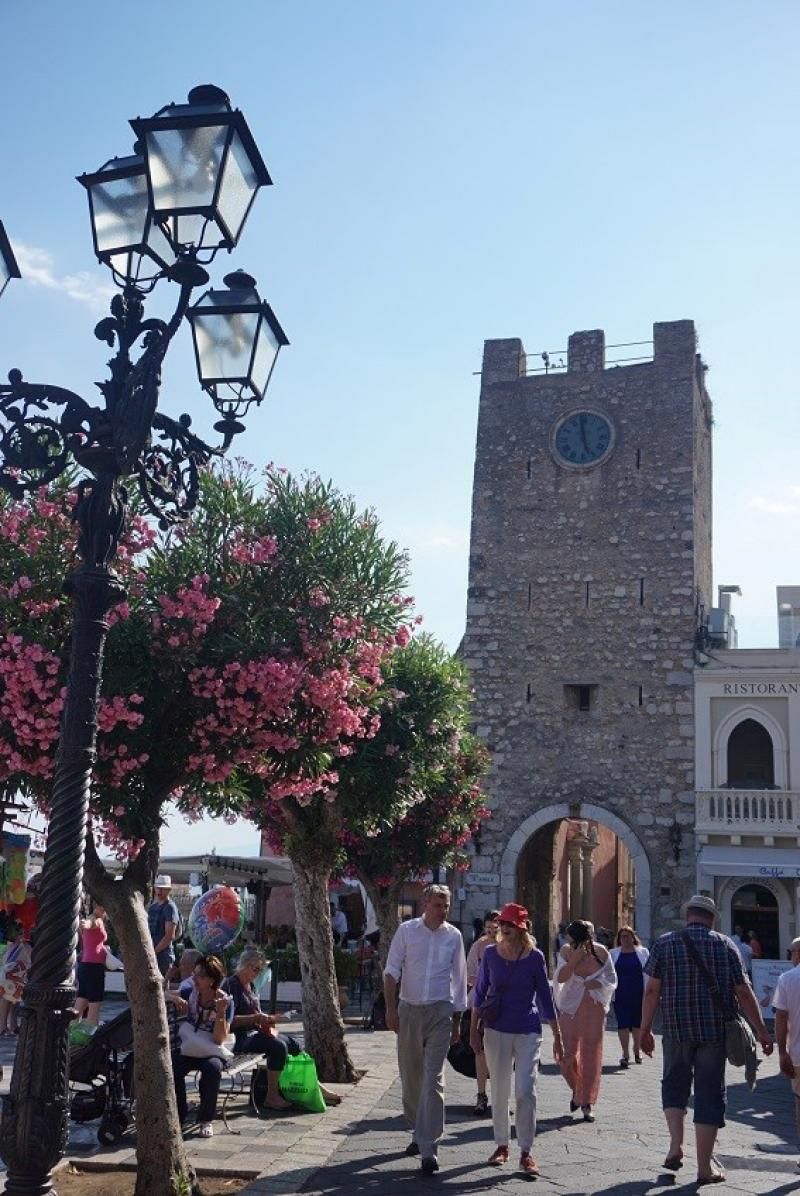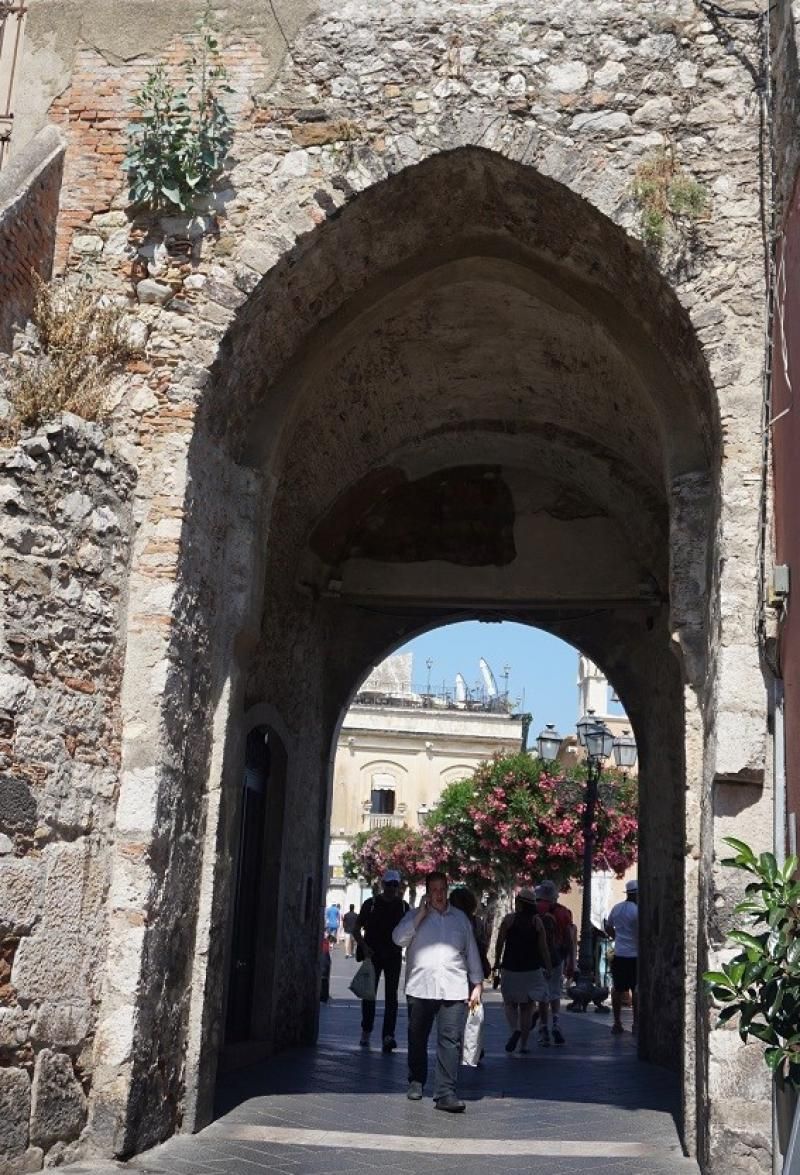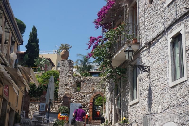 Bir tepe üzerine kurulan kasabaya biraz virajlı ancak müthiş manzaralı yollardan ulaştıktan sonra aracımızı şehrin aşağısında bir otoparka bırakıp asansörle çıktık şehir merkezine. Burada yürüyüş yolu da var, bana Monako'yu andırdı biraz. Daha sonra tarihî bir kapıdan şehre girdiğinizde, Sicilya’nın en renkli ve tarihî kentinin dar sokaklarında ve bu sokakları dolduran turistlerin, hoş dükkânların, butiklerin ve ünlü kafelerin içinde buluyorsunuz kendinizi.