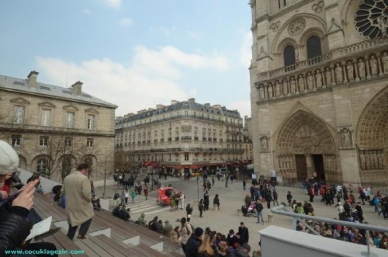 Notre Dame Katedrali önünde dinlenme ve seyir için tribün