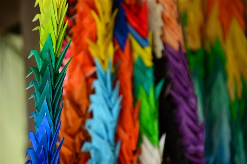 Anıtların hepsinin apayrı bir hikayesi var. Ama bu hikayelerden en çarpıcı olanı şüphesiz ki atom bombasından sağ olarak kurtulan ama sonrasında radyasyon nedeniyle hastalanan Sadako'nun hikâyesi. Sadako Japonların ünlü geleneksel sanatlarından biri olan origami ile 1000 tane kağıttan kuğu yaparsa iyileşeceğine inanmış ve hayatı boyunca 1000'den çok daha fazla kuğu yapmış.
