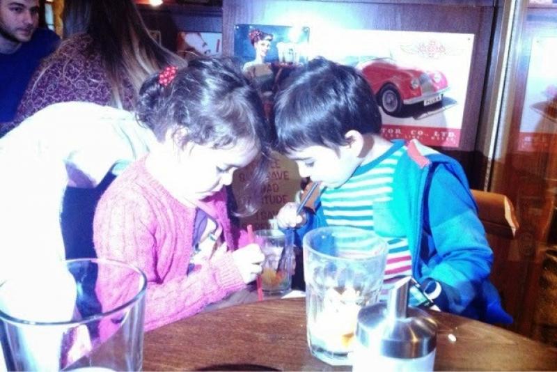 Akşam iki dirhem bir çekirdek hazırlanıp dışarı çıkana kadar şakır şakır yağmur yağdığını fark etmiyoruz. E hani 3 gün boyunca hava yağmursuzdu? Şemsiyemiz bile yok yahu. Çocukları pusetlerine oturtup dizlerine odadan aldığımız havluları seriyoruz ve bize en yakın kamusal alan olan bir pub'a koşar adım ulaşıyoruz : ) Biz biralarımız, kuzular da limonataları ile sağlığımıza kadeh kaldırıyoruz : )