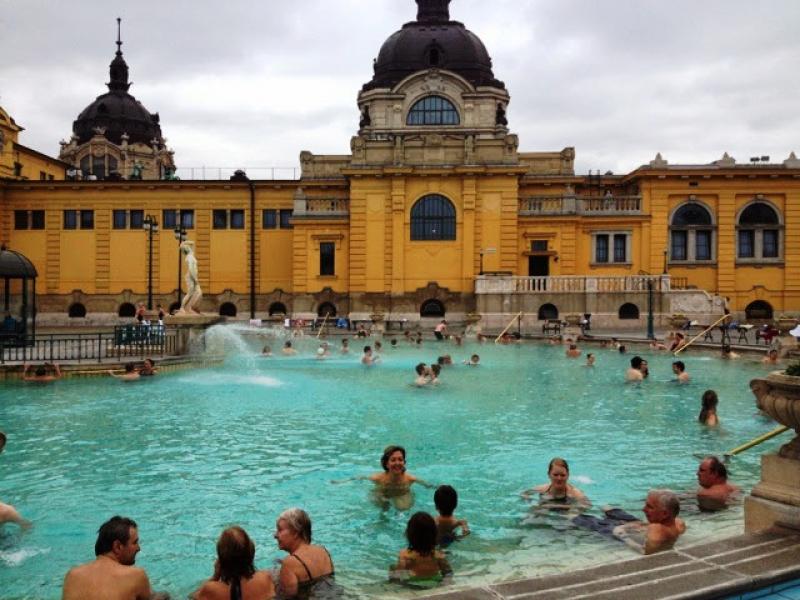 Yolumuzun üstündeki Kahramanlar Meydanı’nda soluklanıyor, Şehir Parkı'nın içinden geçerek Szechenyi hamamına ulaşıyoruz. Giriş ücreti 4 kişi için 17000 HUF. Vay anasını sayın seyirciler! 0-6 yaştan bari para almaz insan be ayıp denen bir şey var. Neyse, hamama giren terler diyoruz ve işte kış ortasında açık havada sıcacık havuzun içindeyiz, harika hissediyoruz : ) Ellerimiz buruşana kadar sudan çıkmıyoruz...