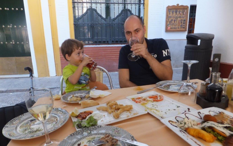Akşam güzel bir yemek için kendimizi Triana bölgesine atıyoruz ve vitrininde istakozları görünce Rio Grande giriyoruz. Istakozlu paela çok başarılı idi , bunun dışında Endülüs hertürlü deniz böceğinizi yemeniz için uygun bir bölge bizim çocuklarda gün içerisinde çok yoruldukları için restaurantta usluca oturup oyuncakları ile oynadılar bizde rahatça yemeğimizi yedik , yanında da Cadiz bölgesinin üzümlerinden yapılmış güzel bir beyaz şarap içtik , ispanyada da şaraplar fena değil şarap seviyorsanız deneyin muhakkak.
