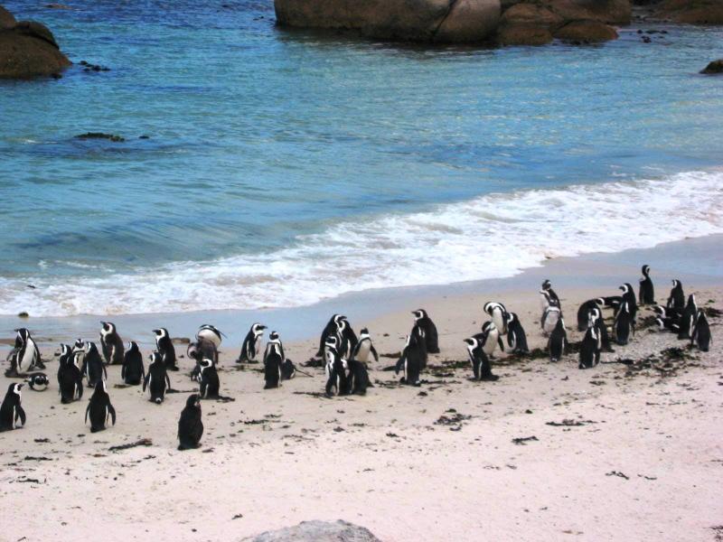 Ümit Burnu'ndan dönerken yolda Boulders Bay'e uğrayıp, Güney Afrika penguenlerini gördük, oldukça küçükler ve sevimli sevimli ortalarda dolaşıyorlardı. Bu park veya plaj bölgesi oldukça bakımlıydı ve ziyaretçiler için ahşap yürüme yolları yapmışlar. Bu yolların ve güzergâhın dışına çıkmak mümkün değildi.