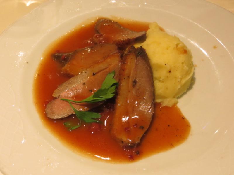 Ana Yemekler* tavada soğan, maydanoz ve yumurtalı bakolarya balığı, yanında sebzeli kuru üzümlü pilav - soğan ve Porto şarabı soslu sığır eti ve patates püresi peynir kremalı ograten tavuk, yanında brokoli, pilav - kemikli ızgara domuz pirzolası yanında kapari ve ograten patates