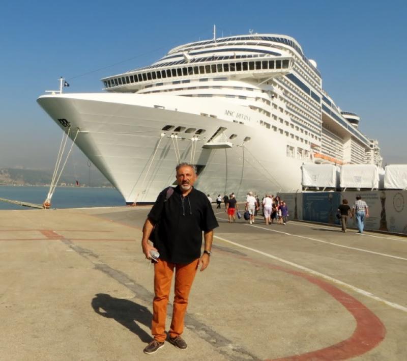İzmir - MSC Divina’ya binişBugün günlerden Salı ve 29 Ekim Cumhuriyet Bayramı. Her Salı olduğu gibi yine sabahın saat sekizinde MSC Divina gemisi penceremizin önünden süzülerek limana yanaştı. Bu gelişi tabii ki bizim ve onun için çok özel. Onun bu son İzmir seferi ve artık Karayip Adaları hattında çalışacak. Bizim için ise, bugün o gemide biz de olacağız. Giderken yolunun üzerinden bizi de alacak!! Oleyyy.