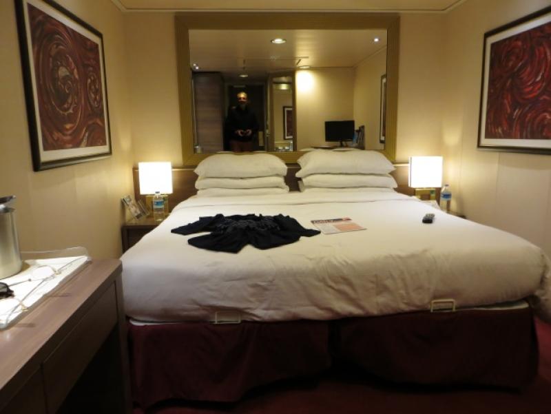 Bakalım İzmir’i bu taraftan seyretmek nasıl oluyor? Tabii ki iyi oluyor, hepinize bu duyguyu yaşamanızı dilerim. Körfezden ayrıldıktan sonra artık gemimizi keşfetmenin zamanı diyorum. Öğle yemeğinde restoranları ve yemekleri şöyle bir tetkik ettiysem de şimdi sizlere gemiyi tanıtmak zamanı geldi. İlk olarak odamıza gidiyoruz ve kapımızın önünde bizi bekleyen bagajlarımızı içeriye alıp yerleşiyoruz. Akdeniz’de sonbaharı, Karayipler ve Miami de baharı ve yazı, daha sonra da son durağımız New York’da kışı yaşayacağımız için, bir bavulla seyahat etmek ne mümkün. Bu seyahatimizde 4 mevsimi birden yaşayacağız. İkişer bavuldan aşağısı kurtarmaz. Hemen bavullardaki baharlık ve yazlıkları yerleştirerek, kışlıkları ellemeden, bavullarımızı yatağımızı altına kaldırıyoruz. Odamızdaki her santimetrekareyi kullanmamız ve sıkışıklığa mahal vermememiz lazım.