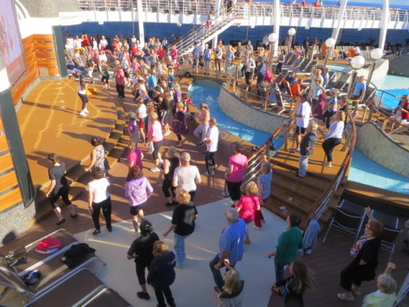 Gemideki diğer aktivitelerde ise, öğleden sonra Black & White salonunda uzman eğitmenler eşliğinde dans dersi var. Bu gün kalçalarımızı Latin stiliyle sallayarak Cha cha cha yapacağız. Gece ise Subaylar ve Beyefendiler Gecesi’nde yine aynı salonda subaylarla dans etme şansını kaçırmayın diyorum. Acaba bayan subay var mı? Gidip görmeliyim! Tabii havanın da güneşli olmasından istifade ederek havuz başı aktivitelerine de katılacağım. Biraz da havuza girmeyi planlıyorum. Üst güverteden geçerken gözüm hep sigara içenlerin üzerinde, bakalım yeni katılanlar ne durumda! Zehirlenmeye devam mı?
