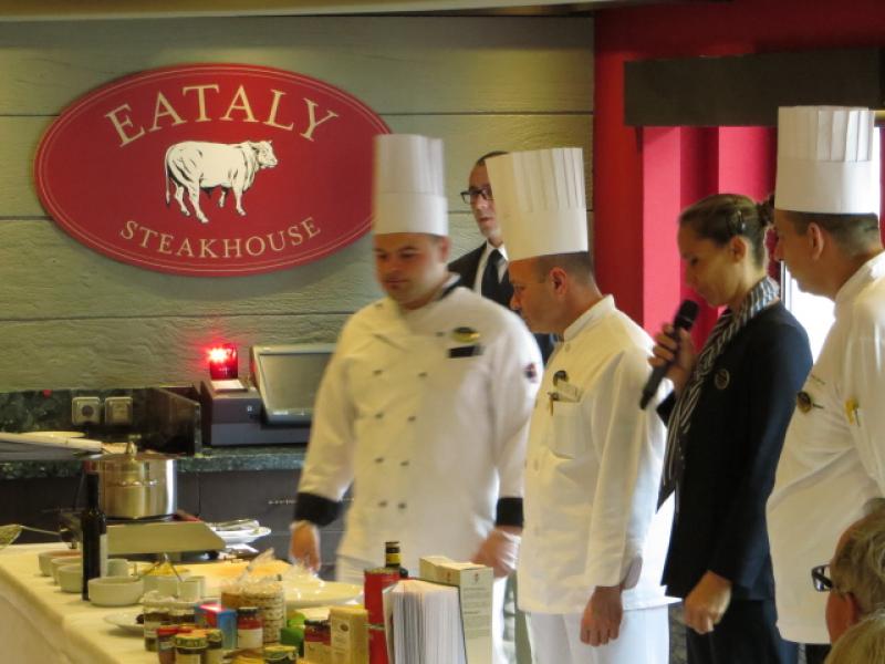 Çünkü orada şamata var. Mesela eğlence ekibiyle dans var. Haydi, biraz hareket edelim ve kaslarımızı açalım. Yediklerimizi eritelim. Ya da şöyle diyeyim, öğle yemeği ve özellikle bu akşam yemeği için midemizde yer açalım. Şahane yemekler bizi bekliyor. Bakın size bir sır vereceğim. Bu gezilerimde öyle insanlarla tanıştım ki, bu gemiye yalnızca yemek yemeye geliyorlar. Bazı şehirlere bile inmiyorlar. Biz bu muhteşem yemekleri bu fiyata başka bir yerde yiyemeyiz, buraya yemekler için geliyoruz diyorlar. Aynı şekilde kumar oynamak için de gelenler var. Geminin kumarhanesinin büyüklüğüne ve bahis arttırma miktarına göre gemi seçiyorlar. Gezi değil bakın, gemi seçiyorlar. Bizde meraklıları kumar oynamaya Kıbrıs ve Sofya’ya gitmiyor mu? İşte aynı şey. Her türlü insanın ve eğlencenin bulunduğu dev bir şehir burası, düşünün bu gemide 4 bin küsur kişi yaşıyor ve 6 bin kişilik gemiler de var. Ayrıca gemide özel restoranlar da var, Eataly gibi. Hatta orada bir yemek kursuna da katıldım. Gördüğünüz gibi bütün sırlarını aldım!