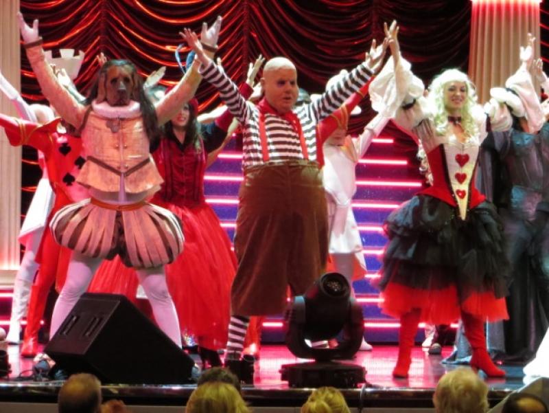Bugün denizdeyiz ve günlük programımıza bakıyoruz. Bu akşam Gala Yemeği var. Yemek öncesi kokteylde yine her turun başlangıcında yapıldığı gibi kaptanın misafirlerle beraber fotoğraf çektirme töreni var. Yabancı misafirler buna önem veriyorlar ve hatıra olarak da bu fotoğraflara bir sürü para ödüyorlar. Türklerden hiç çektirenini görmedim, ama çektiren de olmuş olabilir. Bu geceki kıyafet düzeni Gala kıyafeti olacak ve tüm gemideki şık hanımefendi ve beyefendiler gibi yanımızda getirdiğimiz takım elbiselerimizi, papyon veya kravatlarımızı takıp arz-ı endam edeceğiz. Akşamın şovu yine Panteon Tiyatro’da ve teması da Wonderland. “Alice Harikalar Diyarı” masalından esinlenmiş muhteşem bir hayal dünyası gösterisi var. İşte size gösteriden 2 adet fotoğraf. 1 saatin nasıl geçtiğini anlamıyorsunuz. Ayrıca kostüm ve makyajlar fotoğraflardan da görüleceği üzere çok güzel. Zaten İtalyanlar bu işi biliyorlar ve bu eğlencelere de milyon Eurolar harcıyorlar.