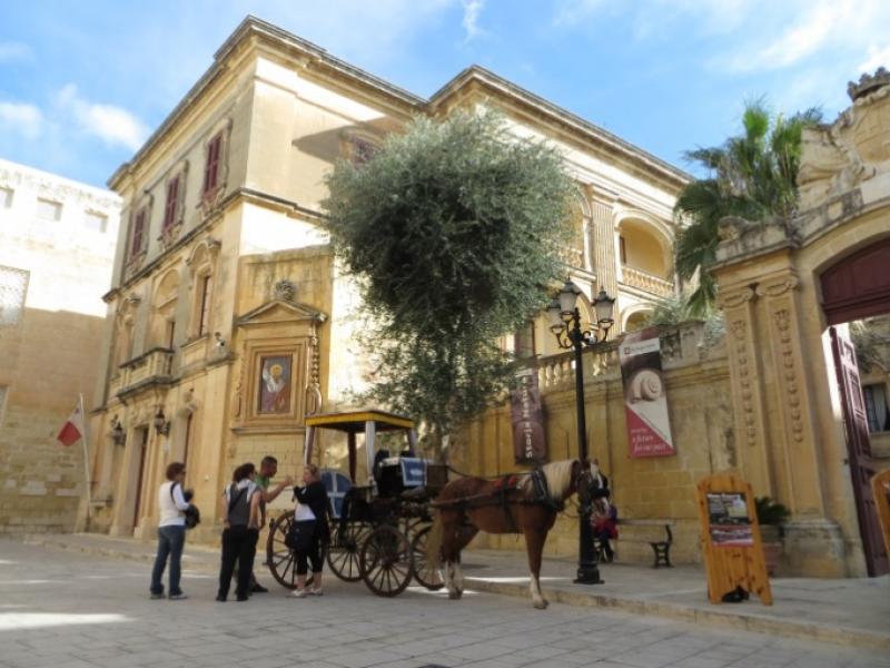 Şehrin etrafını çevreleyen surların ana giriş kapısından içeriye girince sizi sağ tarafınızda Aziz John Şövalyeleri’nin sarayı karşılıyor. Ön avlusunda tabii ki şövalyelerin işareti olan haç yerde tüm heybetiyle size bakıyor. Etrafı surlarla çevrili olan Medina, sakin bir şehir ve yürüyerek içinize sindire sindire 2 saatte gezebileceğiniz bir yer. En önemli binası da St. Paul Katedrali. Malta’daki ilk eski katedral. Görkemli duruşu ile etkileyici gerçekten. Dükkânlardan hediyelik eşyalar ve bilhassa cam el sanatları ürünleri alabilirsiniz. Sokaklar dar, temiz ve etrafa bakınması keyifli bir yer. Tüm binalar altın kireç taşından yapılmış. Taşların sarı renkte olmasından bu ismi koymuşlar. Hatta Malta adasının tamamı bu taş ile dolu olduğundan burayı istila eden Yunanlılar bu taşa bal taşı da demişler. Zamanımız kısıtlı olduğundan 1 saatte burasını gezmek zorundayız. Kısa bir turdan sonra girdiğimiz yerden surların dışına çıkıp giriş kapısı önündeki parkta HOHO otobüsümüzü beklemeye başladık. Hata iki. Yarım saatte bir gelen 2 otobüs de dolu gelince ne yaparsınız. Taksi tutalım gidelim haydi dedik. Verdiğimiz 15€ bilet parasını boş verin! Evet, taksi durağında bekleyen taksilere gittiğimizde aldığımız cevap “bütün taksiler dolu, şehri dolaşan müşterilerini bekliyorlar.” Haydaaa gemimizin kalkmasına 2,5 saat var ve biz hala Medina’dayız. Artık belediye otobüsleri ile Valletta’ya geri dönmek en garantisi olduğundan bulduğumuz ilk otobüs ile 40 dakikalık bir yolculuktan sonra Triton Çeşmesi’nin de bulunduğu, Valletta’nın en büyük meydanına geldik.